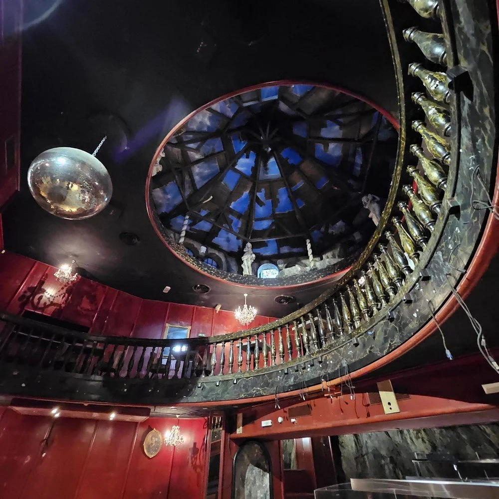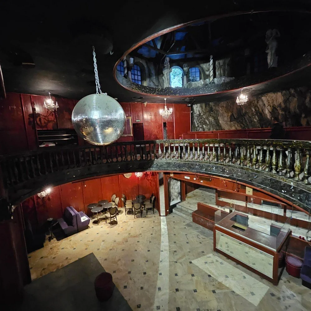 Ancien restaurant – dancing, le lieu conserve aujourd’hui encore des volumes singuliers : hauteurs sous plafond, circulations atypiques, espaces ouverts, rotonde, vides…
